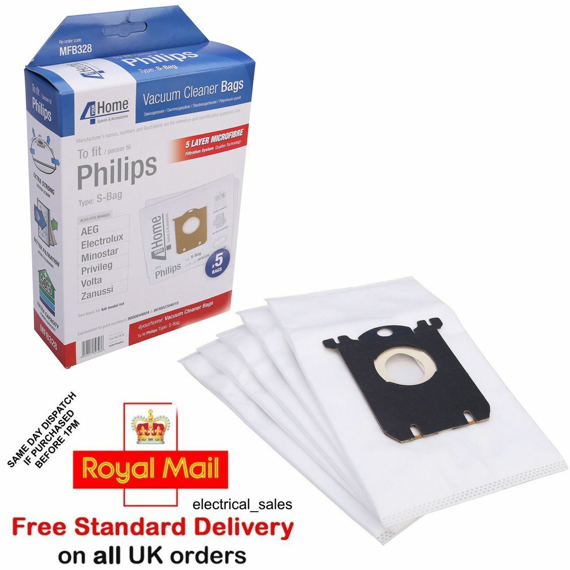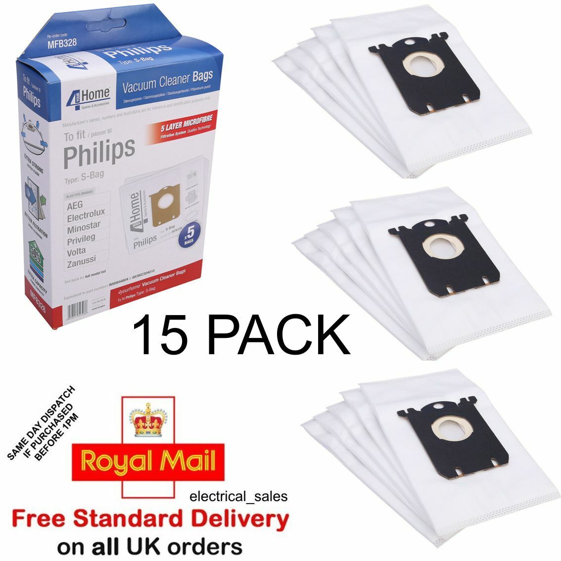Fits Philips Zanussi Electrolux Vacuum Cleaner Microfibre S Class Dust Bags X 15 –