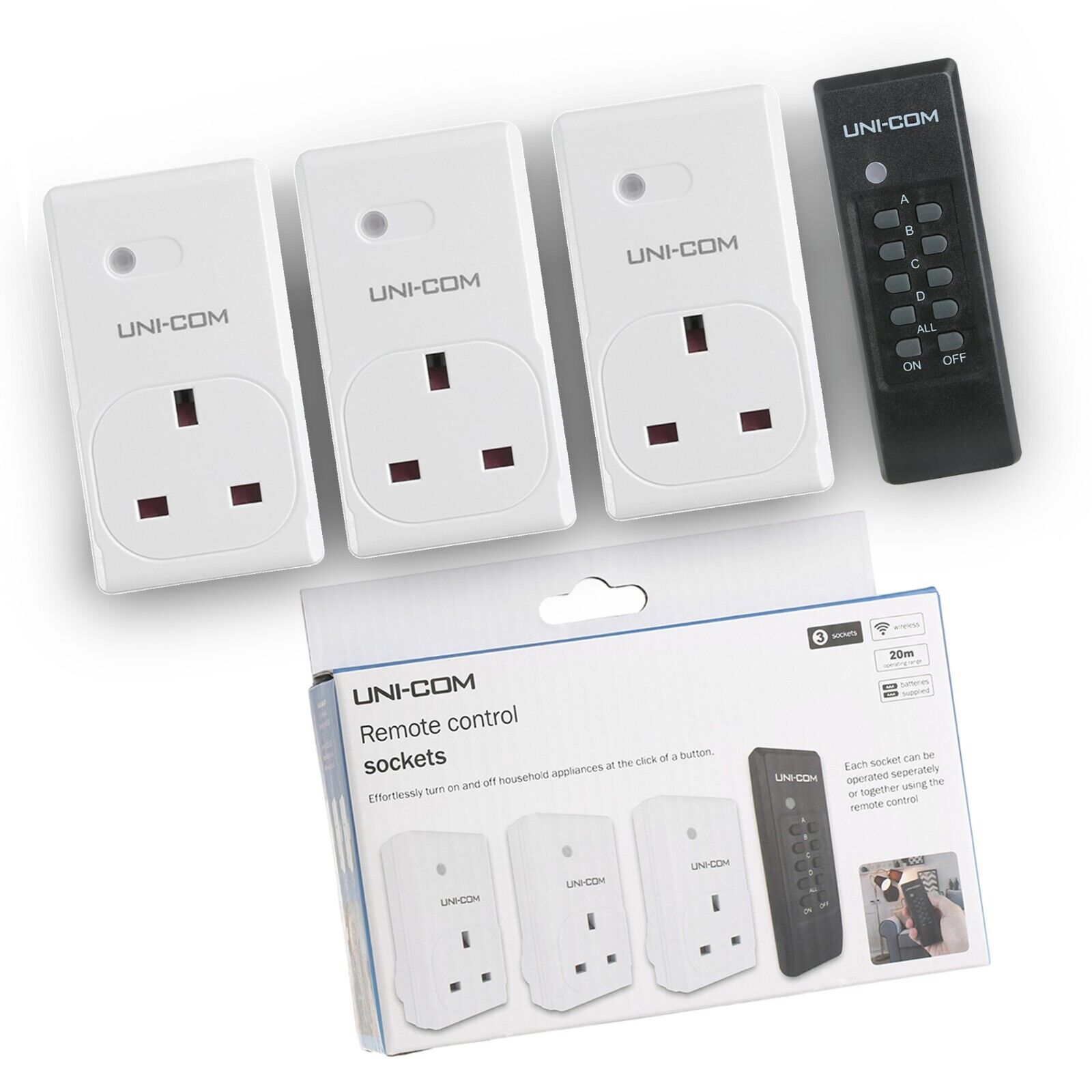 Pack Of 3 Wireless Remote Control Mains Sockets 20m Range With Remote White 2 packs (6)